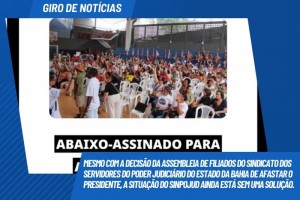 Mesmo com a decisão da Assembleia de filiados do Sindicato dos Servidores do Poder Judiciário do Estado da Bahia de afastar o Presidente, a situação do Sinpojud ainda está sem uma solução.