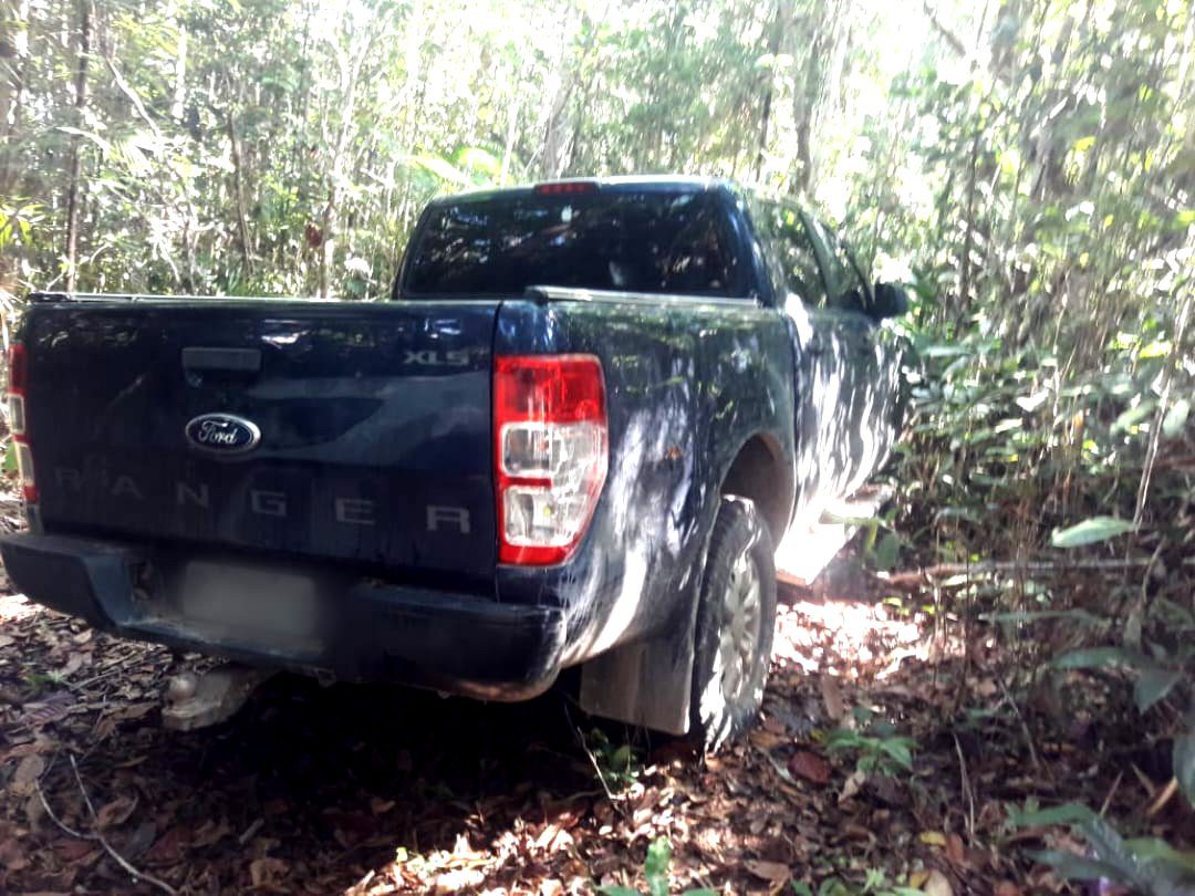 Os policiais encontraram uma caminhonete modelo Ranger, cor azul, roubada no último dia 24 de março na BR-367 e que segundo testemunhas, a quadrilha que assaltou o hotel fazenda chegou ao local neste mesmo veículo. As investigações para identificar e prender os ínvidos continua.
