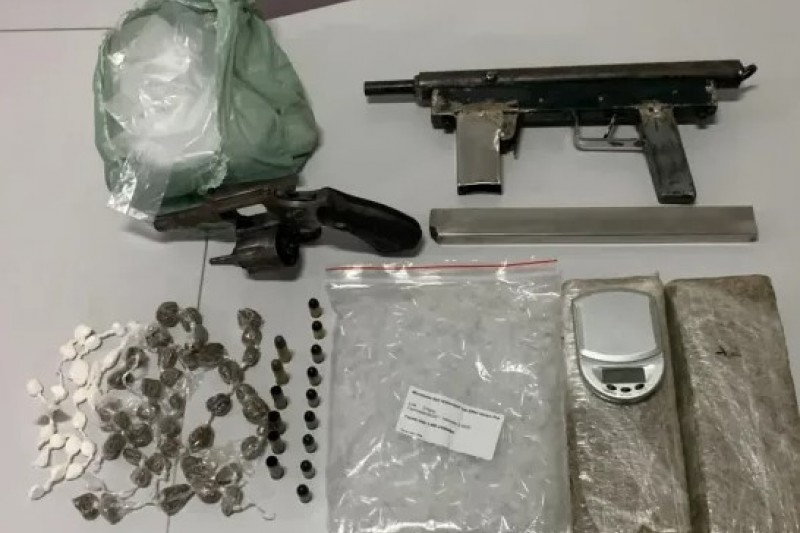 Com os marginais os policiais apreenderam um revólver, uma mochila com dois tabletes de maconha, porções menores da mesma droga e de cocaína, prontas para a venda e uma submetralhadora de fabricação caseira.