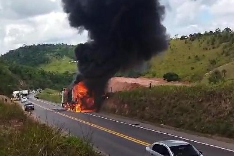 Devido ao fogo, a rodovia no trecho conhecido por ‘Três Pistas’, ficou interditado. A polícia rodoviária federal que foi para o local não deu maiores esclarecimento das causas do incidente e horário de liberação da estrada. O motorista que não teve o nome identificado, saiu ileso do incidente,