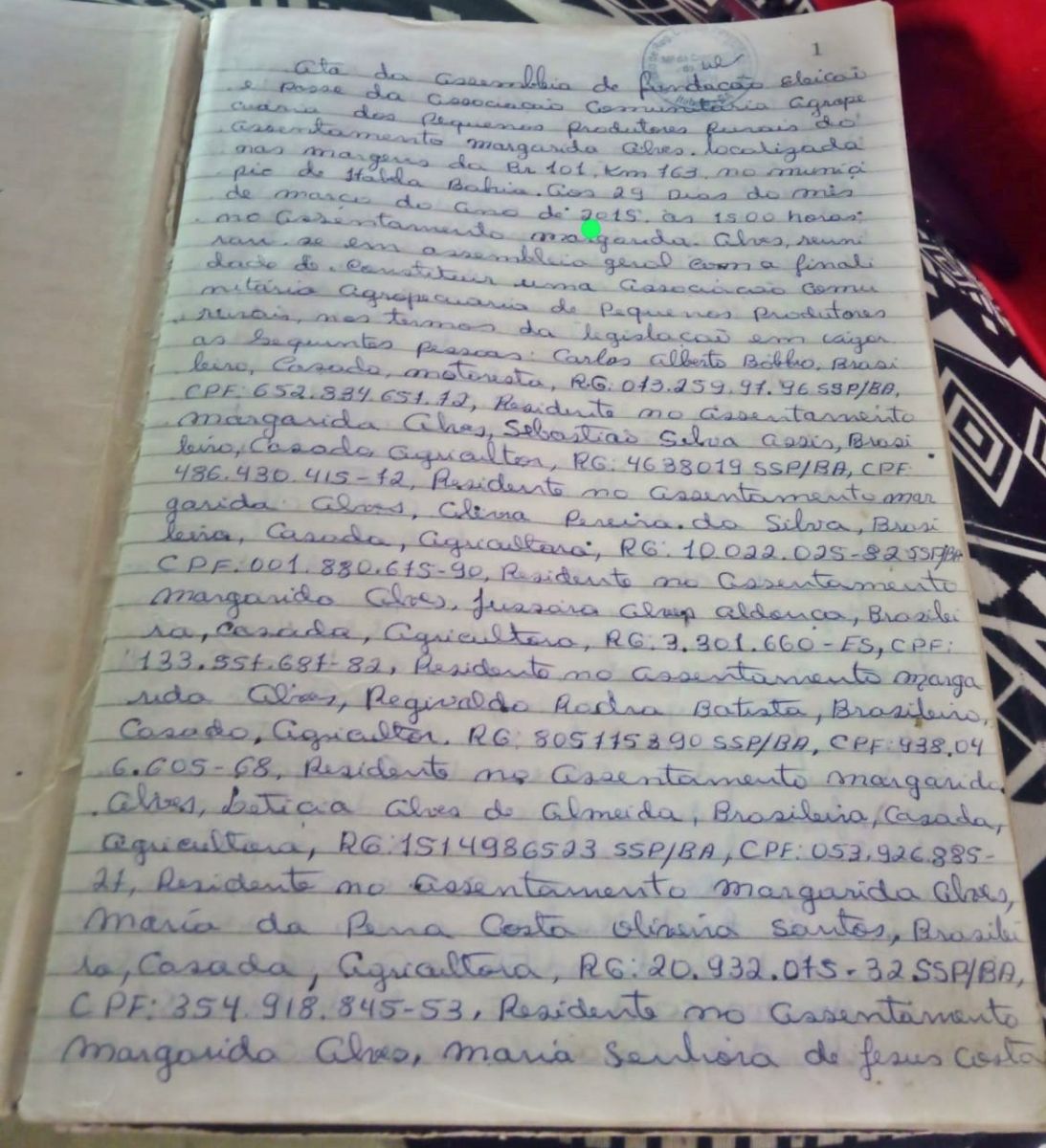 Como prova que ela estar na terra desde de 2014, ela presentou uma ata de uma reunião assinada pelos assentados e que aprece o nome dela, no dia 29 do mês de marco de 2015; Vejam