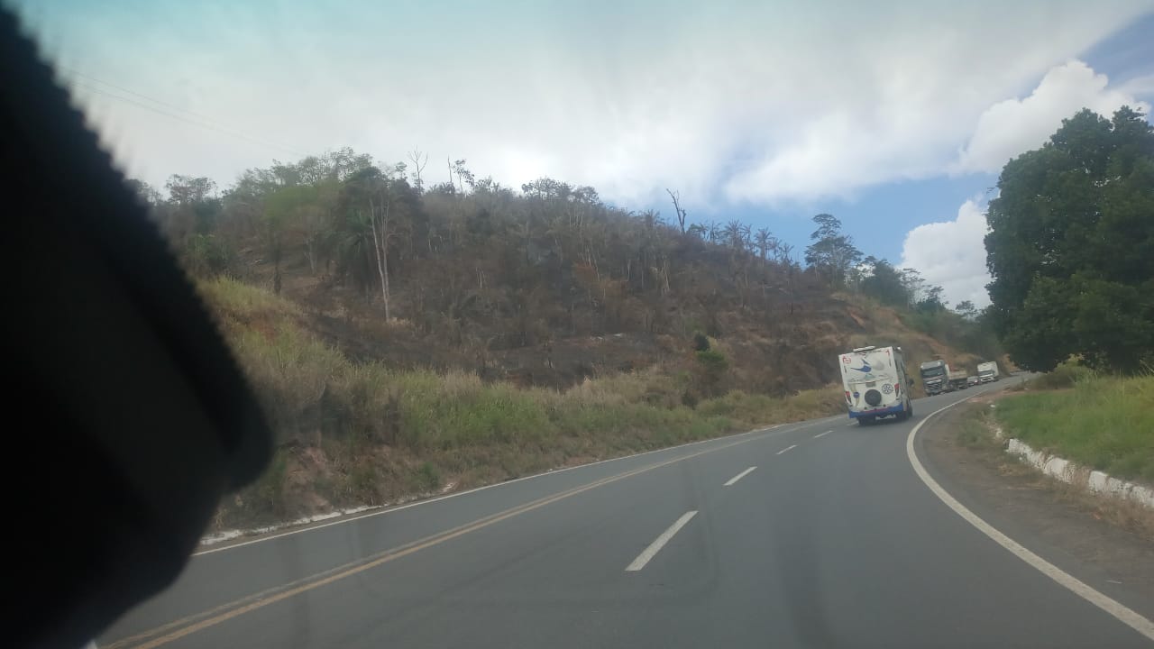 Novas queimadas e focos de fogo são avistadas em pequenas áreas de matas entre as cidade de Itabela e Eunápolis. Quem passa pela BR-101, consegue avistar os focos e muitas áreas totalmente destruídas pelo fogo.