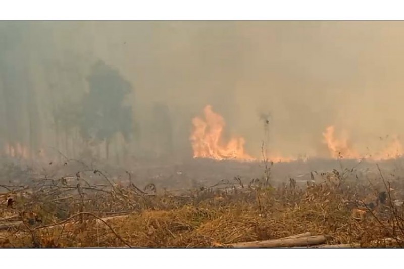 Uma propriedade rural no inteiro de Porto Seguro e que pertence ao Grupo Checon Distribuidora de Teixeira de Freitas, está em chamas. A plantação de eucalipto já cortada e pronta para ser carregada foi atingida pelo fogo nesta quarta-feira (13/12).
