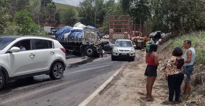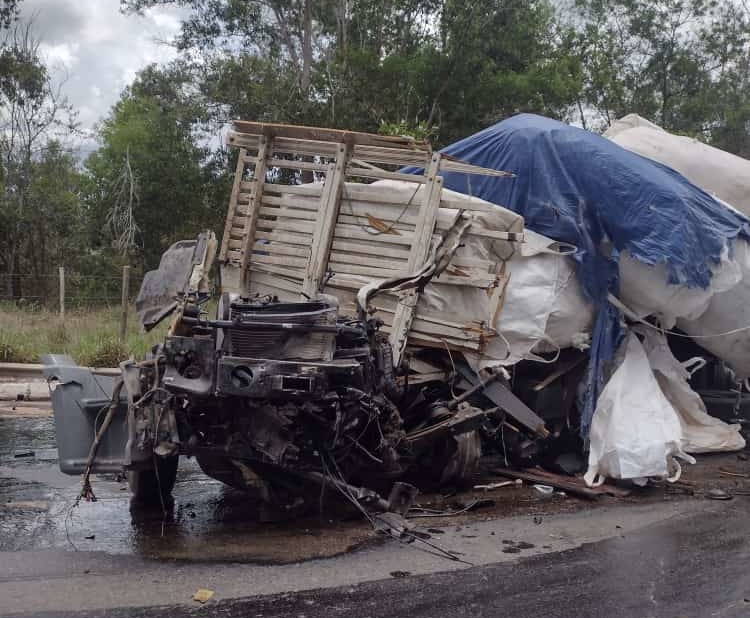 Um caminhão carregado que seguia sentido a Itabela bateu de frete com uma carreta da Júlio Simões, empresa prestadora de serviço da Veracel Celulose.