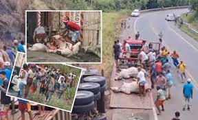 Uma carreta carregada de bois tombou às margens da BR-101, neste domingo, 17/05, no trecho do município de Gandú, no Baixo Sul do estado. Com o incidente, a carga viva se espalhou pela rodovia.