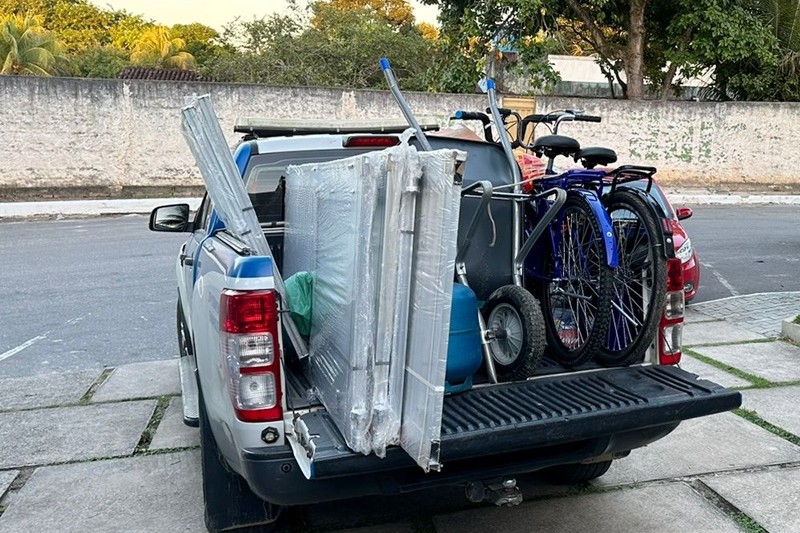 Materiais para construção, bicicletas, ventilador, panela de pressão, carnes congeladas e alimentos comprados com os cheques falsos, foram apreendidos nos bairros Alicrim I e Sapucaieira em Eunápolis.