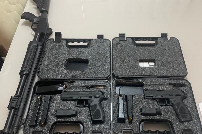 Na residência do investigado das inicias, R. A. dá S, foram encontradas e apreendidas duas pistolas calibre 9mm, uma espingarda calibre 12 da marca CBC, seis carregadores 9mm e 17 munições de calibre 9mm intactas.