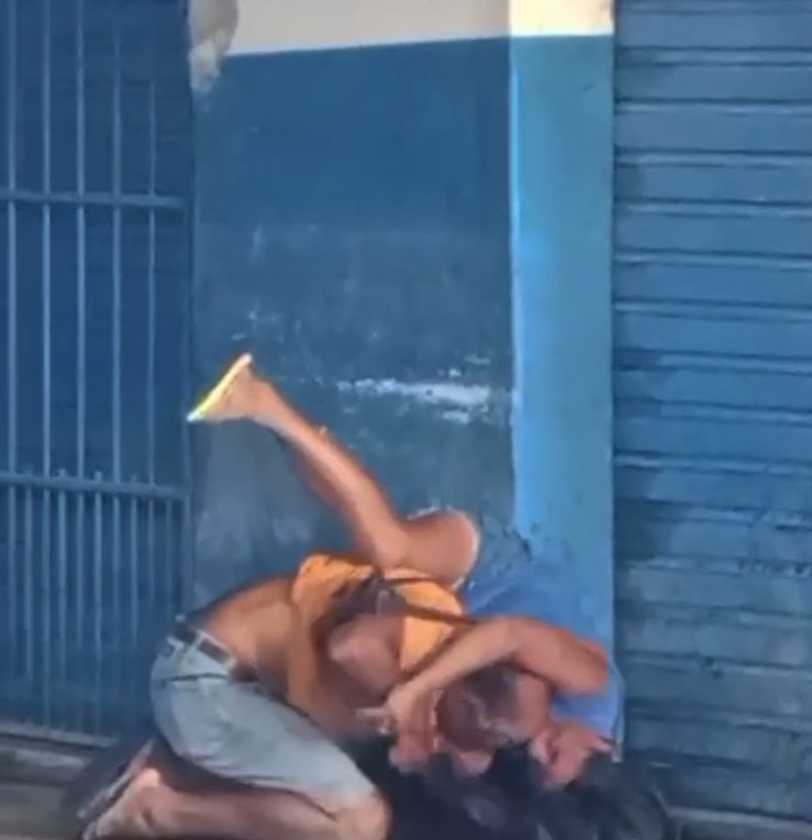 Um vídeo que circula nas redes sociais é possível ver o momento que o homem está por cima da mulher e dando muitos socos. Também é possível ver o momento que os dois são separados e a mulher muito nervosa com o rosto sagrando sai procurando pela vítima.