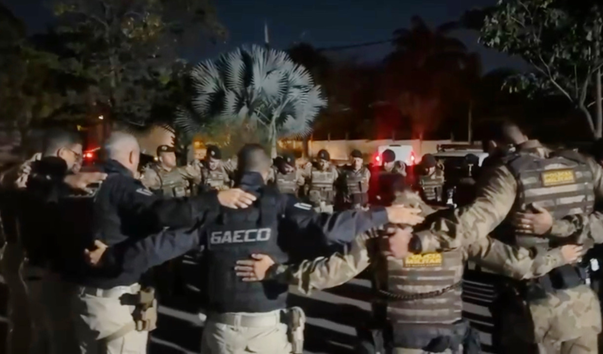 Também foram cumpridos mandados de busca e apreensão domiciliar e, nas residências, foram encontrados aparelhos celulares, dispositivos eletrônicos, armas e mais de 100 munições.