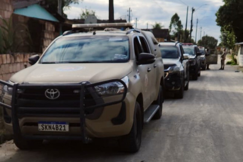A ação tem como objetivo o cumprimento de mandados de busca e apreensão contra suspeitos envolvidos em uma série de crimes, como tráfico de drogas, porte ilegal de armas, ameaças, homicídios e crimes contra o patrimônio.