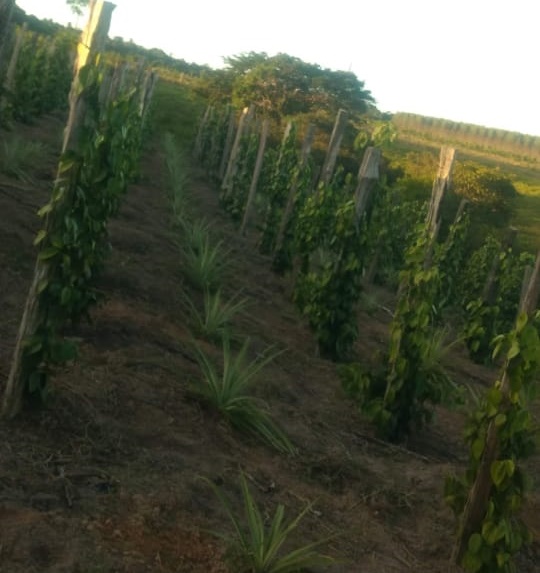 Vejam as imagens da propriedade com muitas plantas, casa com piscina, uma boa plantação de pimenta entre outras culturas, além de uma área de pastagem.