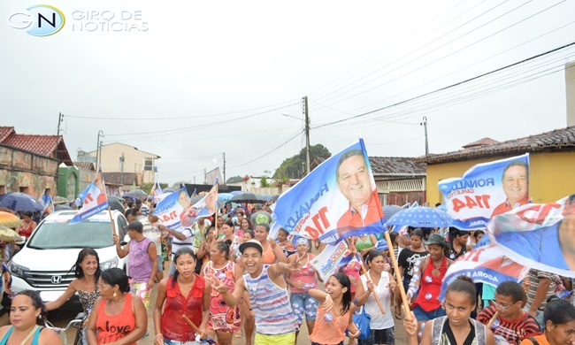 Nem mesmo os pingos de chuva foram capazes de atrapalhar este ato da democracia. Festa que foi demonstrada pelas jovens, Heloísa e Sâmara de 16 anos. As duas, levavam as bandeiras com os nomes dos candidatos a deputados e governador. “Foi às próprias que pediram. Mesmo novinha, elas já é fã do prefeito Junior Dapé”, revelou uma amiga.