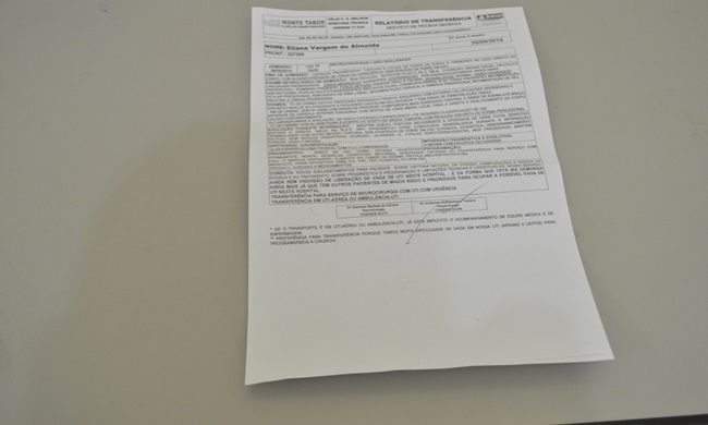 A denunciante, Luciene Vagens Almeida Silva de 41 nos, moradora da Rua Amaralina, bairro Bandeirante, em Itabela, que é irmã da paciente Eliana Vargens Almeida de 37 anos, mãe de uma cainça de 11 anos, residente na rua João Pereira, centro de tabela, conta que sua irmã esta internada no Hospital Luiz Eduardo Magalhães a 28 dias, a espera de uma cirurgia de urgência, ainda não foi realizada, por falta de um Leito com UTI.