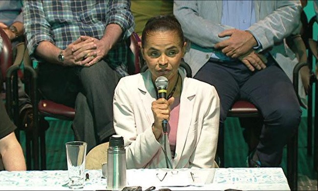 "Tendo em vista os compromissos assumidos por Aécio Neves, declaro meu voto e o meu apoio a sua candidatura. Votarei em Aécio e o apoiarei. Votando nesses compromissos, dando um crédito de confiança à sinceridade de propósitos do candidato e de seu partido e, principalmente, entregando à sociedade brasileira a tarefa de exigir que sejam cumpridos", disse Marina, ao final de um pronunciamento de cerca de meia hora, ao lado de seu candidato a vice na eleição presidencial, deputado Beto Albuquerque (PSB-RS).