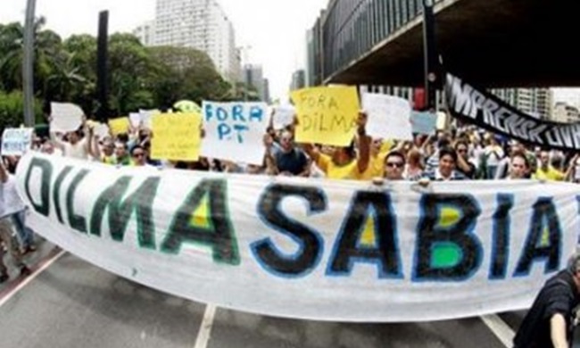 No ato, discursaram o empresário Paulo Martins, que foi candidato a deputado federal pelo PSC no Paraná, e o deputado federal eleito Eduardo Bolsonaro (PSC-SP), filho do deputado federal Jair Bolsonaro (PP-RJ). Paulo acusou o PT, partido da presidente, de construir uma ditadura no país. Já Eduardo chegou a dizer que votaria no líder da facção criminosa PCC, Marcos Willians Verbas Camacho, conhecido como Marcola, mas não em Dilma.