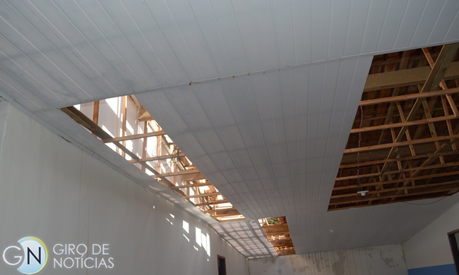 Os transtornos no colégio foram causados nos declive do telhado, sem a caída, a água não desceu e infiltrou no forro, casando alagamentos em quase todas as salas.