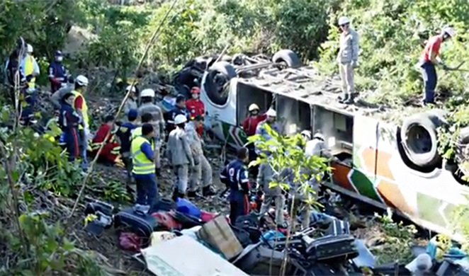 Segundo informou um agente da PRF de Serra, na região Metropolitana de Vitória, no Espírito Santo, o ônibus desceu de uma ribanceira de cerca de 50 metros após perder o controle em uma curva. "O local é de difícil acesso e as equipes estão lá trabalhando", informou o agente Edervandro Paiva. A rodovia precisou ser interditada para a retirada do veículo do local.