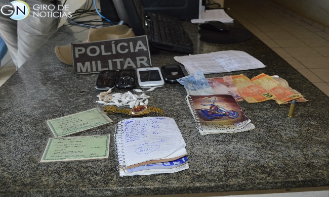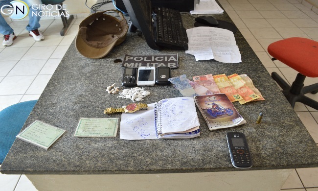 Com eles a polícia aprendeu 3 aparelhos celulares: 27 porções de cocaína: 9 pedras de Crack: um caderno com anotações de nomes supostamente ser de clientes: um cartucho intacto e R$ 107.00, em espécie.