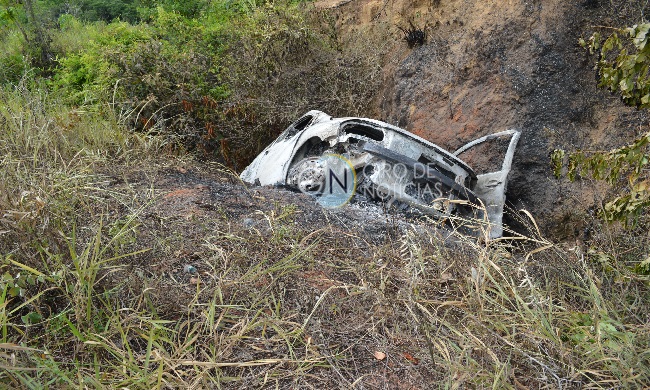 O carro incendiado pelos elementos que pertence a família Avancini de Itabela, foi empurrado pelos criminosos para dentro de uma ribanceira as margens da rodovia. O carro ficou completamente destruído.