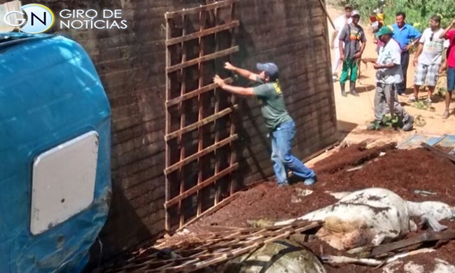 Um agricultor da região foi o primeiro a chegar ao local e ajudou a retirar alguns dos animais que ficaram presos no caminhão. Os demais ficaram soltos e deram um certo trabalho no resgate.