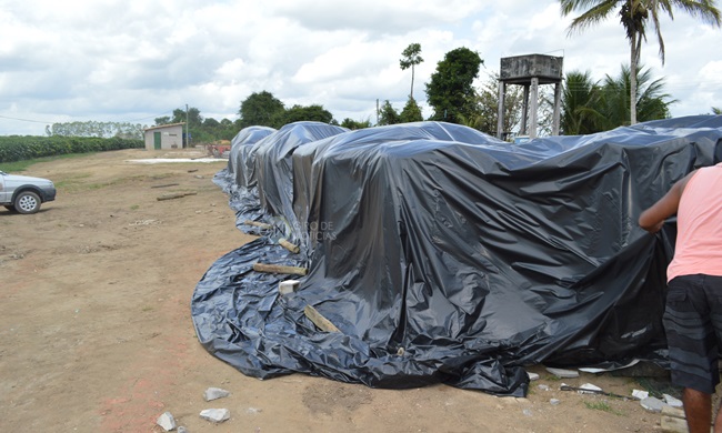 O café foi encontrado em Sacos Big Bag, com capacidade de 1.200 kg. Ou seja 24 sacas de 50 kilos cada. O produto estava armazenado no pátio da propriedade coberto com uma lona.