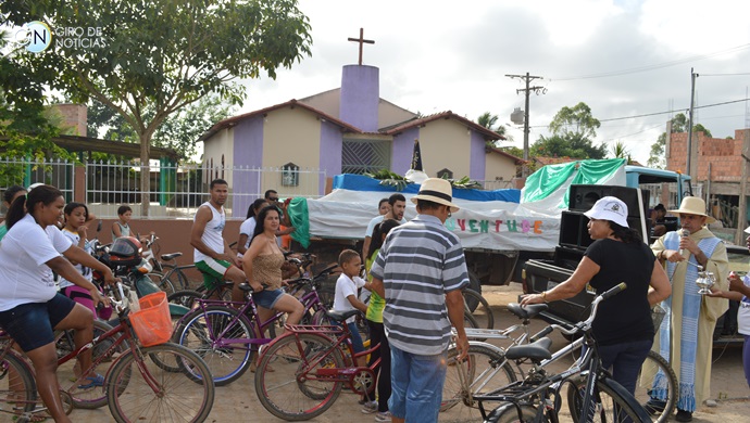 O passeio ciclístico em homenagem as comemorações de Nossa Senhora Aparecida, iniciou-se por volta das 6 horas deste domingo e percorreu varias ruas e bairros da cidade, durante o trajeto foi feito duas paradas, em frente às igrejas no Bairro Irmã Dulce e no Bairro Ouro Verde.