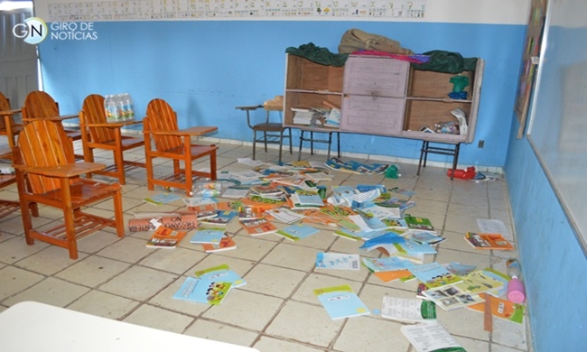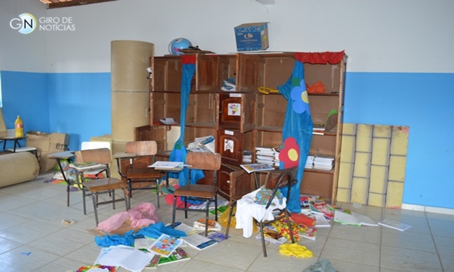Os prejuízos deixados pelos vândalos no final de semana foram enormes. Os criminosos quebraram vitrô, arrancaram portas, arrobaram armários e furtaram materiais, danificando as dependências da escola municipal.