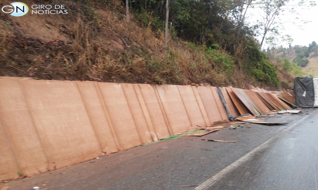 Uma carreta, com placas de São Paulo, carregada com 26 toneladas de lâminas de madeira, material utilizado na fabricação de armários, tombou na madrugada de segunda-feira no Km 80 da BR-101 próximo da divisa, entre Itabela e em Eunápolis.