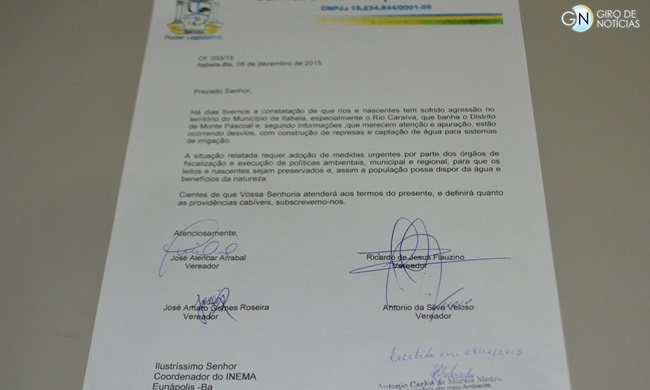Após receber inúmeras denuncia de moradores de um aumento excessivo de pessoas capitado água para irrigação de forma desordenada, o vereador protocolou um oficio junto ao INEMA solicitado da condenadora do órgão Patrícia Reis, uma reunião com autoridades, produtores e o Secretário de Meio Ambiente de Itabela, para tratar do assunto, que para o vereador é de extrema gravidade.