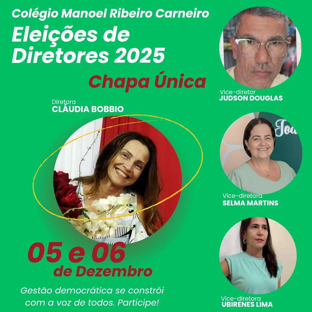 Candidata ao cargo de Direção: Vanessa Behy Caribé Dias. Candidatos (as) ao cargo de Vice Direção: João José da Salva; Aracelle Souza Santos e llza Ferreira do Nascimento.