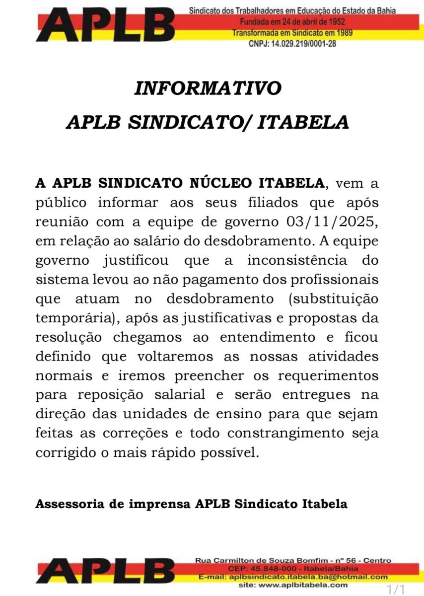 A APLB buscou o diálogo com a gestão municipal para resolver essas questões, embora, em algumas situações. O objetivo das discussões é garantir o cumprimento dos direitos dos trabalhadores em educação e a transparência nos processos de pagamento.
