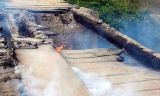Moradores revoltados tocam fogo em ponte no interior de Guaratinga.