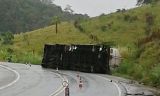 Scania carregada de combustível tomba na BR-101, motorista fica ferido