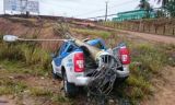 Após colisão poste cai em cima de viatura da polícia civil em Santo Antônio de Jesus