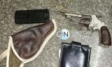 Jovem é preso por porte ilegal de arma de fogo e veiculo sem documentação.