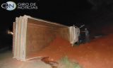 Caminhão carregado com cascalho tomba em rodovia em Itabela.