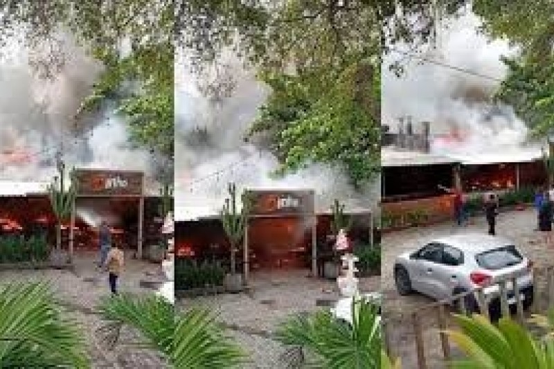 Um incêndio foi registrado no início da tarde desta quarta-feira 22/10/2025 na churrascaria Espetinho do Dinho, localizada no bairro Mundaí, na orla norte de Porto Seguro.
