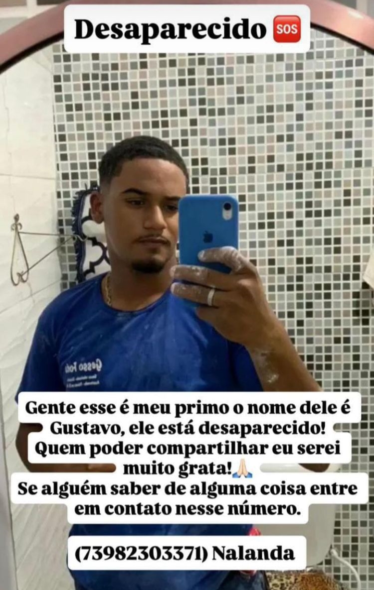 Jovem de 20 anos, identificado por, Gustavo Caio dos Santos Souza, está desaparecido há 3 dias em Eunápolis, no Sul da Bahia. A família pede ajuda para encontrar o rapaz.