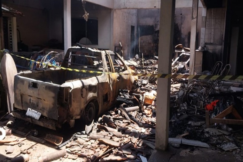 A parte atingida pelo incêndio fica fora da casa aonde fica guardado os artigos de festa e os veículos que foram destruídos. O prejuízo pode chegar há mais de cem mil reais.