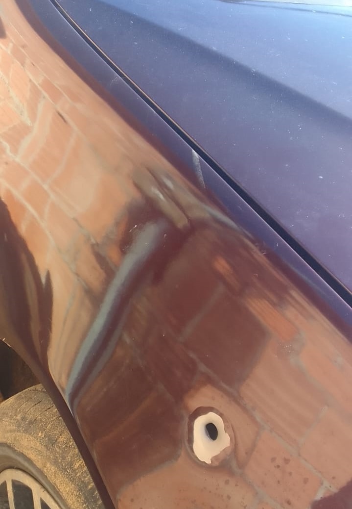 As marcas dos tiros ficaram estampadas na lateral do carro, próximas à porta, evidenciando a violência da ação. Por muito pouco, os ocupantes não foram atingidos. Todos conseguiram escapar ilesos, apesar do susto extremo e do risco iminente de morte.