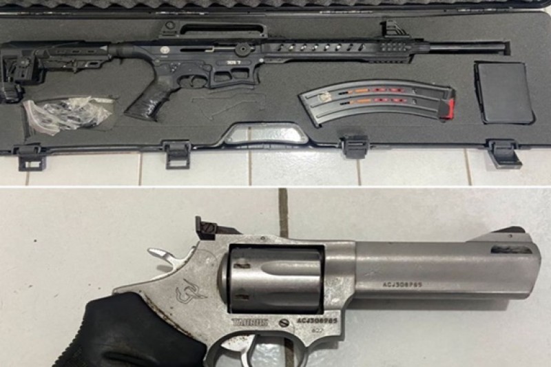 Durante as buscas na residência do investigado, os policiais encontraram e apreenderam um revólver calibre .357 e uma espingarda semiautomática calibre 12. O material foi encaminhado à unidade policial e permanece sob custódia, à disposição do Poder Judiciário.