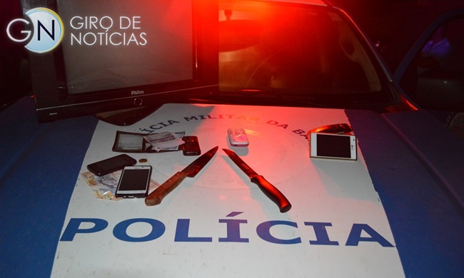 A situação só foi controlada quando o dono da residência conseguiu escapar pelos fundos e acionou a Polícia Militar. Uma guarnição chegou rapidamente ao local e prendeu os suspeitos em flagrante, ainda com os objetos das vítimas e portando facas.