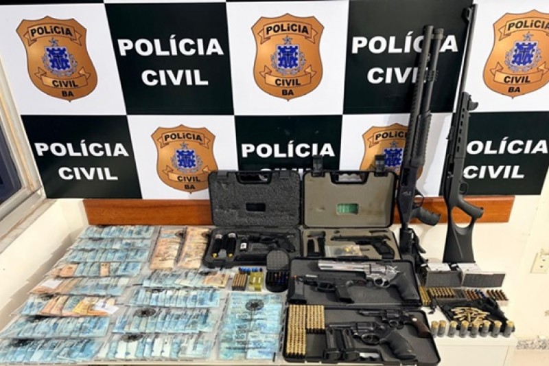 Uma operação da Polícia Civil da Bahia resultou na apreensão de um verdadeiro arsenal e na prisão em flagrante de dois suspeitos por comércio ilegal de armas de fogo, na manhã desta quinta-feira (30), em Eunápolis, no extremo sul do estado.