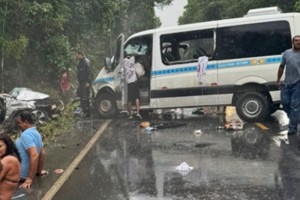 Acidente envolvendo uma Van e taxi deixa uma pessoa morta e outra em estado grave. A colisão ocorreu na BA que liga os distritos de Arraial d Ajuda e Trancoso, em Porto Seguro.