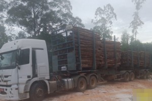 Homem é preso com carreta carregada de eucalipto furtado da Suzano, em Nova Viçosa.