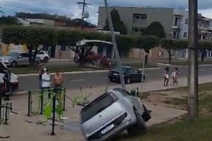 Motorista de lotação perde controle do veículo na BR-101 no perímetro urbano de tabela, sai da pista e bete em um pote na Avenida Manoel Carneiro, no centro da cidade