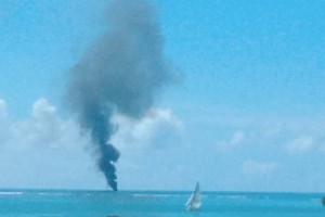 Lancha pega fogo em alto mar na região da praia do sossego em Coroa vermelha.