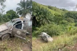 Viatura da PM capota na BR-101 e deixa quatro policiais feridos, no município de Itapebi