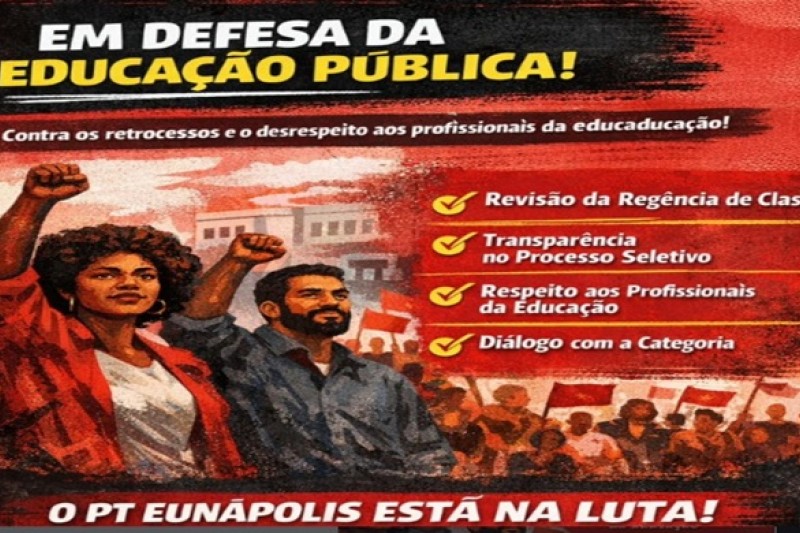 O Partido dos Trabalhadores (PT) de Eunápolis se posiciona de forma firme e contundente contra os retrocessos impostos no atual processo seletivo da Educação no município.