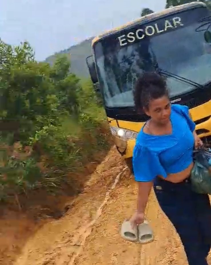 Em vídeos gravados por moradores é possível ver carros atolados e alunos caminhando a pé e descaso devido a grande quantidade de lama.